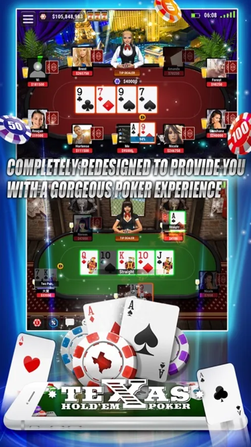 Don’t settle for random tables! Download Texas Hold’em Poker + today and experience the best Texas Hold’em games!