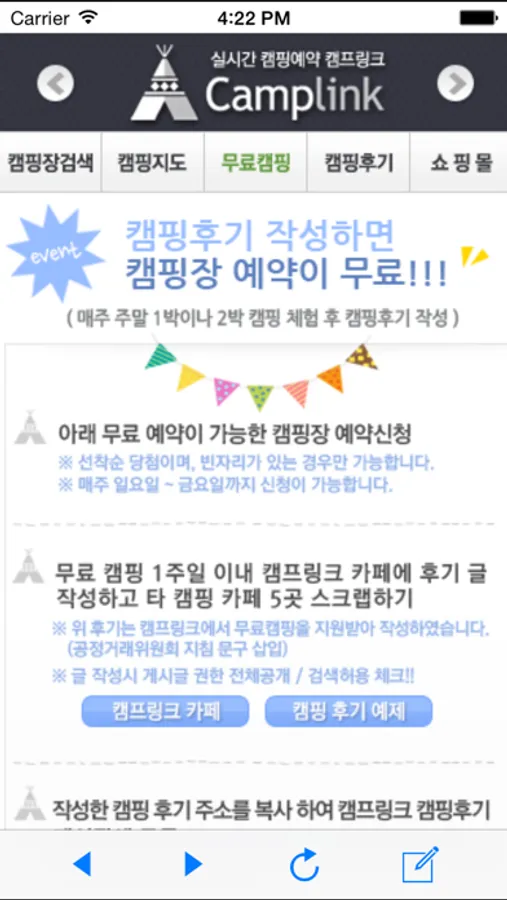 - 캠핑 후기를 작성하면 캠핑장 예약 무료 이벤트 !!