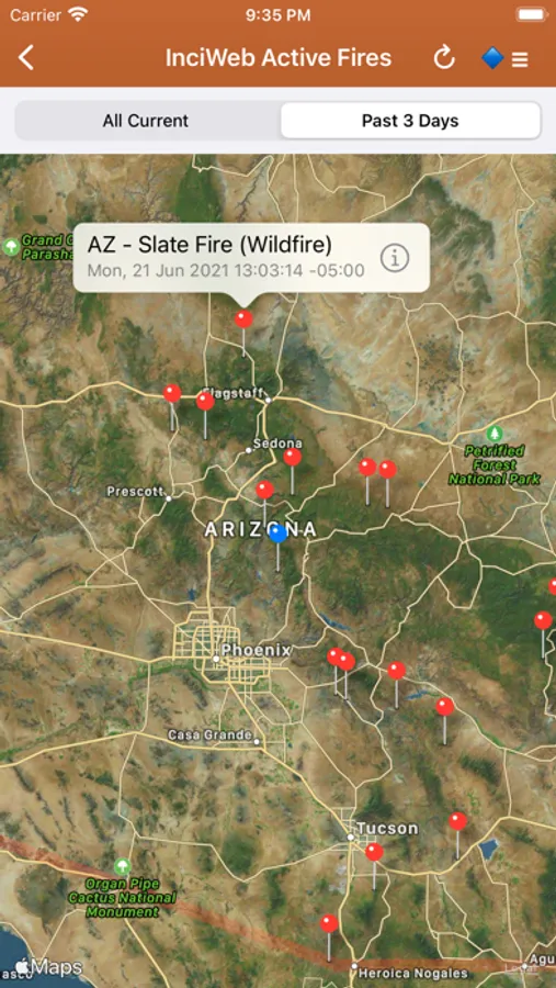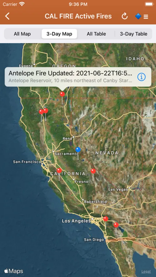 Premium Users: Lookup a driving route to any fire or hotspot with Google or Apple Maps directions Universal Links. Save your preferred Directions Provider in the App Settings.