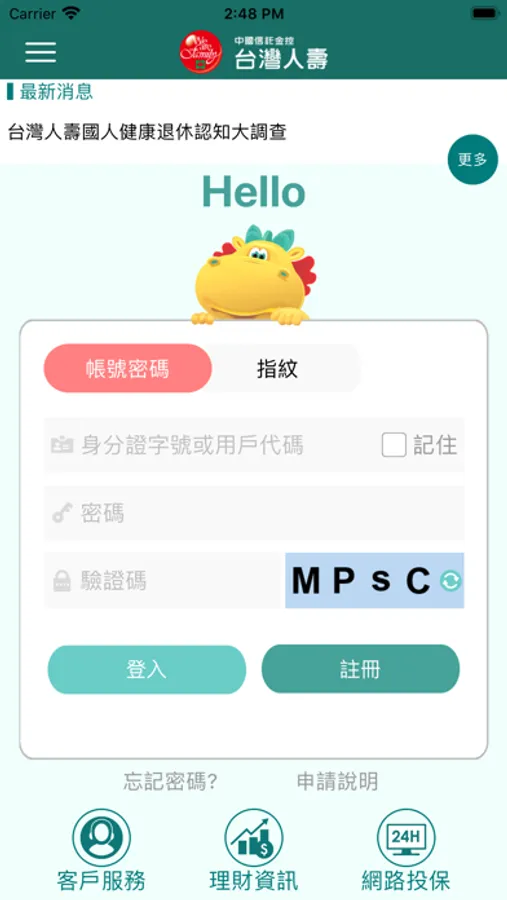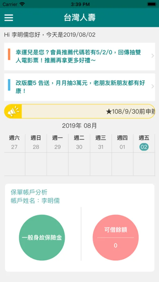歡迎使用台灣人壽行動APP服務,本服務傳遞最即時的相關訊息,並提供保單資訊供保戶隨時查詢。