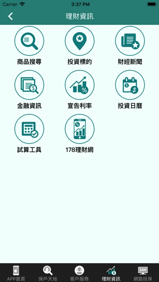 提供商品搜尋、投資標的、財經新聞、金融資訊、宣告利率、投資日曆、試算工具、178理財網等多項理財資訊。