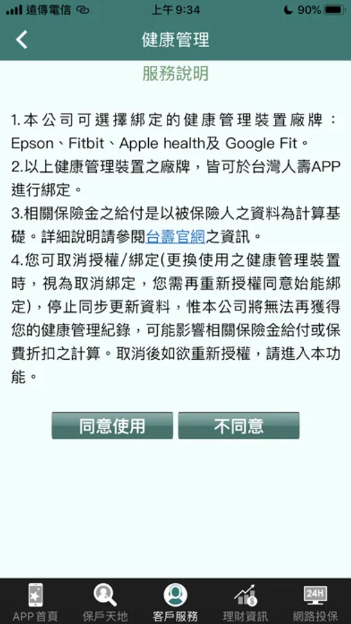 提供客戶健康自主管理介面,協助客戶健康管理,同時提供專業保險顧問、健康諮詢連結及健康積分兌換等優惠服務。