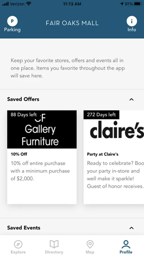FAVORITES – Personalize your experience by selecting your favorite retailers, restaurants, offers and events.