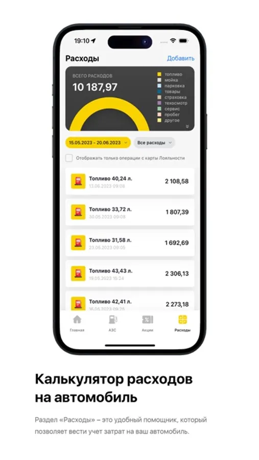 Систематизируйте учет расходов на автомобиль. Затраты на покупку топлива в сети АЗС «Роснефть» с картой лояльности будут подсчитываться автоматически.