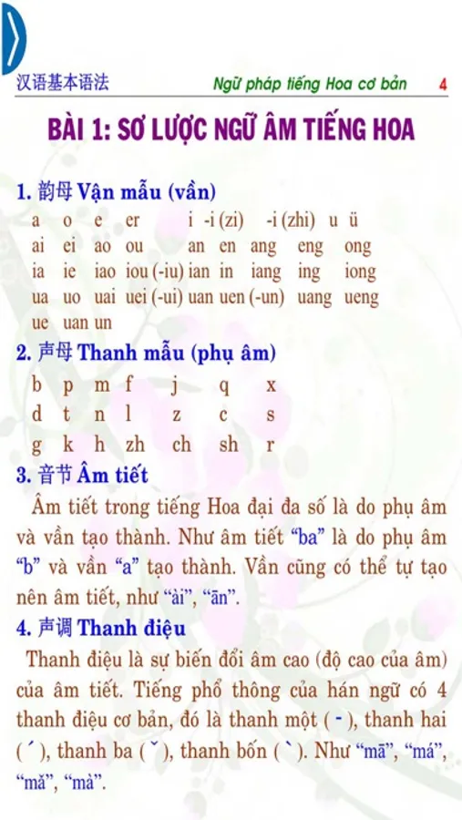 Ngữ pháp tiếng Hoa cơ bản được các bạn ở mọi nơi đón nhận là vì chúng tôi dựa trên yêu cầu của các bạn để biên soạn. Những cấu trúc ngữ pháp trong sách được trình bày rõ ràng, dễ hiểu. Sách biên soạn phù hợp với những người mới bắt đầu học tiếng Hoa, các em học sinh, sinh viên,... ở trình độ cơ bản. Nội dung của sách chủ yếu tập trung vào cách học ngữ pháp vừa nhanh vừa dễ nhớ, giúp các bạn học hiệu quả hơn.