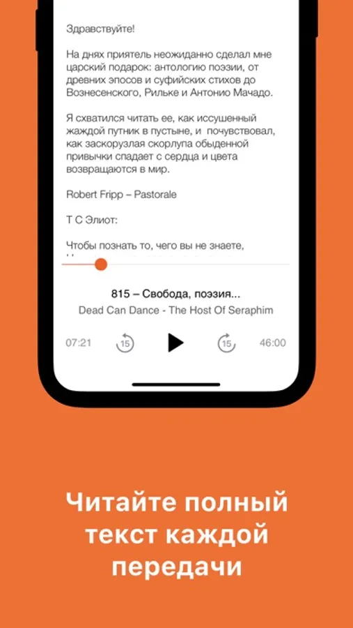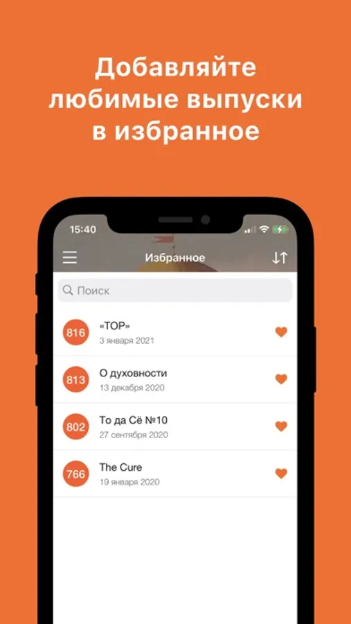Добавляйте любимые передачи в избранное для быстрого доступа и наслаждайтесь прекрасной музыкой!