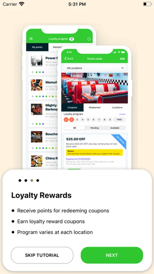 This app is a coupon book for your phone. You can receive great savings year-round at a growing number of merchants.