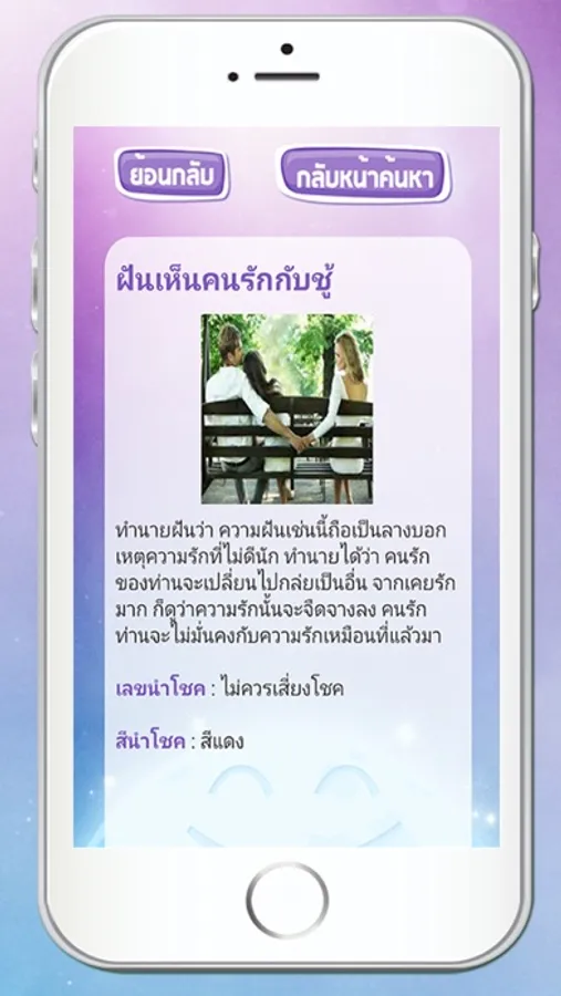 ฝันดีฝันเด่น ฝันร้าย ทำนายฝันได้ด้วยคำทำนาย พร้อมภาพประกอบและเลขเด็ด ฝันถึงคนรัก ฝันถึงตัวเลข สามารถทำนายจะได้ระมัดระวัง หรือตีเลขจากฝัน ก็ได้เช่นกัน นอกจากนี้ ยังมีสีนำโชค และดูดวงเลขเด็ด เพิ่มโชคลาภอีกด้วย ขอบคุณที่ติดตั้งแอพดูดวง ทำนายฝัน ขอให้ทุกท่านโชคดีทุกวัน