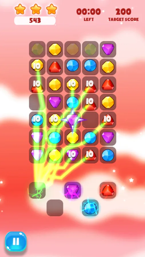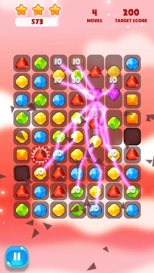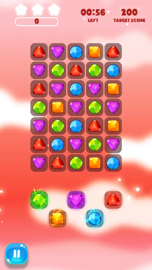 - Swap the jewels to match 3 in a line to remove them