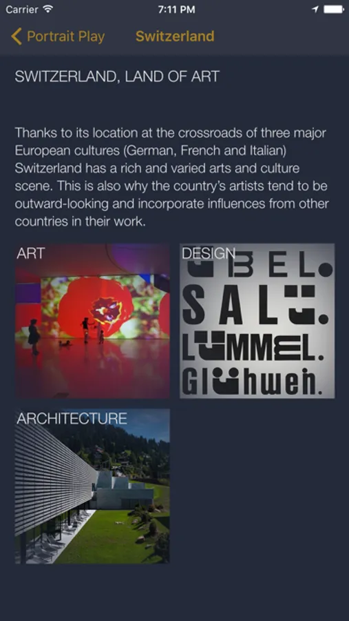 This app is brought to you by Switzerland and the City of Basel, where the arts are highly valued. Concept, design and technology are provided by appamics. To find out more about Switzerland and its arts scene, visit our portals Switzerland, Land of Art and Basel—Culture Unlimited. You will be surprised to discover how many of Switzerland’s artistic and architectural treasures can be found in New York, Miami, and San Francisco.