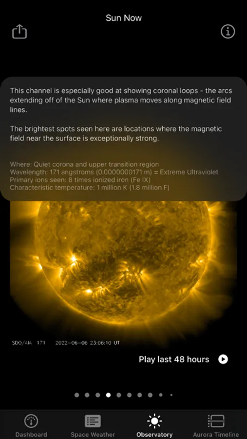 We've also added captions to the presented charts so you can learn more about the Sun and the solar cycle as you use the app.