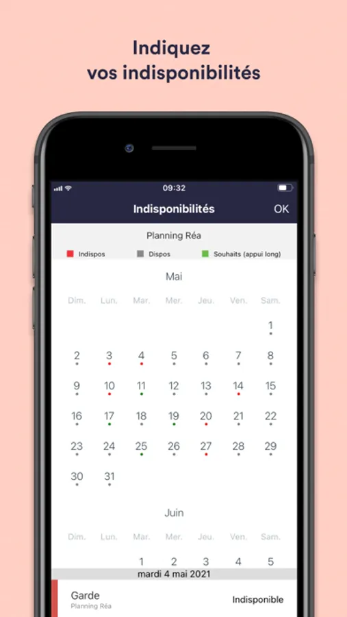 - Indiquer vos disponibilités, indisponibilités et souhaits
