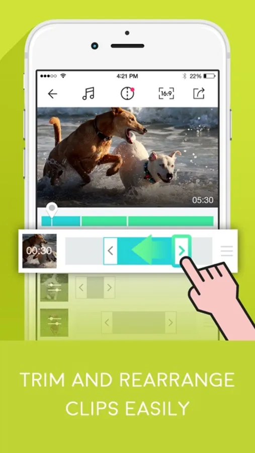 - Decorate your videos with transition effect and background music