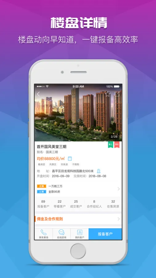 魔售是针对机构合作的新房分销平台,帮助合作机构的旗下经纪人,有效的开发手中的“库存客户”,将其需求对应至新房市场上,并稳妥的实现机构和经纪人的收益。经纪人可通过魔售APP实时了解一手分销项目信息,随时随地报备带看,并实现快速结佣。