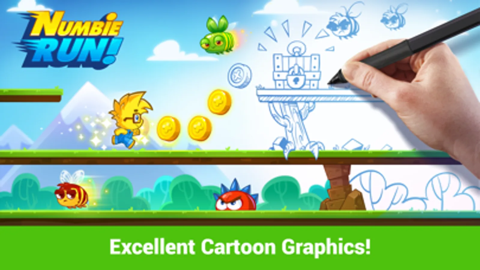 Say goodbye to the dreariness of your standard math class – Numbie Run! is positively buzzing with bees, spiky hedgehogs, golden coins and treasure chests, all part of an expansive learning environment that your child will love! Just one tap is all it takes to run, jump, clear obstacles, learn math and train fast-paced critical thinking skills!