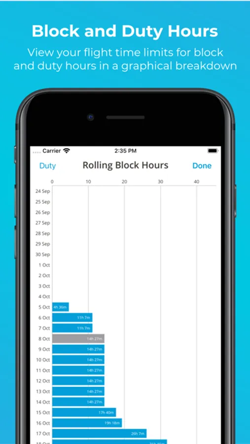 * Block and duty hour graph breakdowns, flight time limits, see your personalised career statistics. export your logbook, your calendar, and lots more!