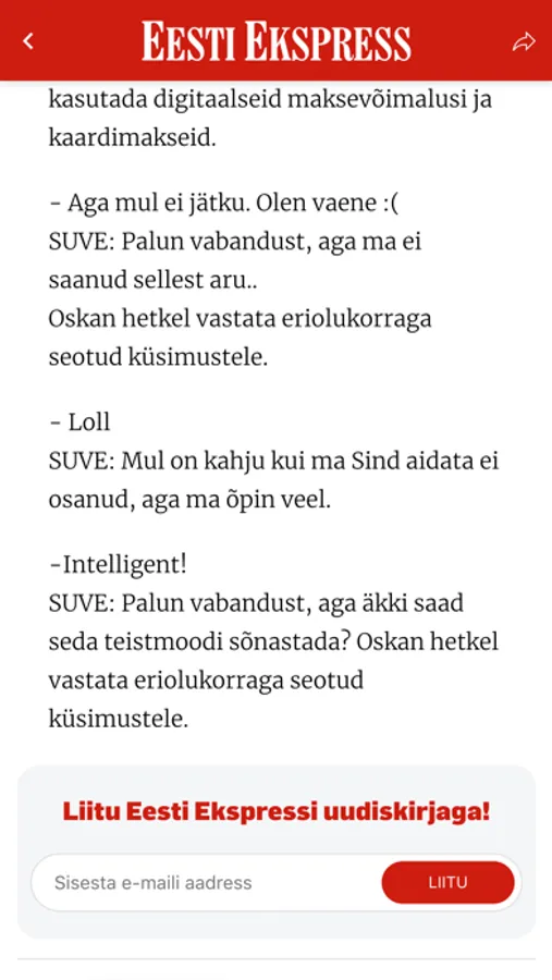 Juba 29 aastat on Eesti Ekspress toonud lugejateni kõige paljastavamad, julgemad, üllatavamad, emotsionaalsemad ja sõltumatumad lood. Eesti tugevaim toimetus teeb iga nädal rasket tööd, et leida üles inimesi kõige rohkem mõjutavad ja huvitavad teemad.