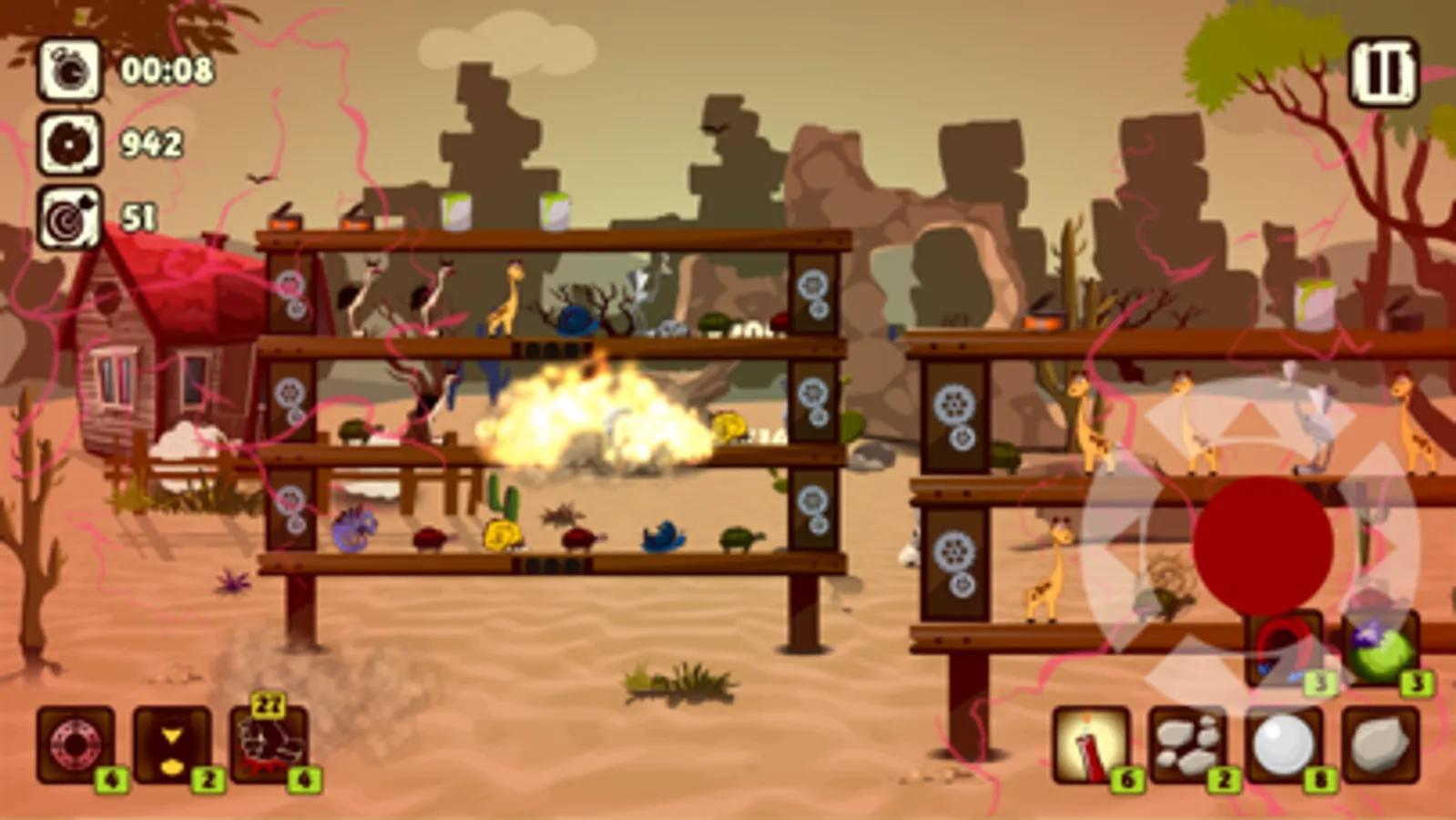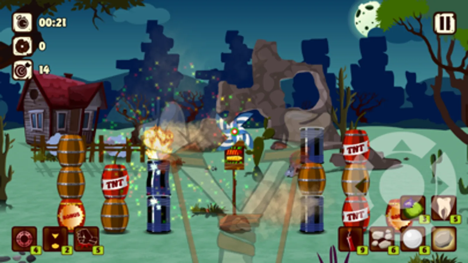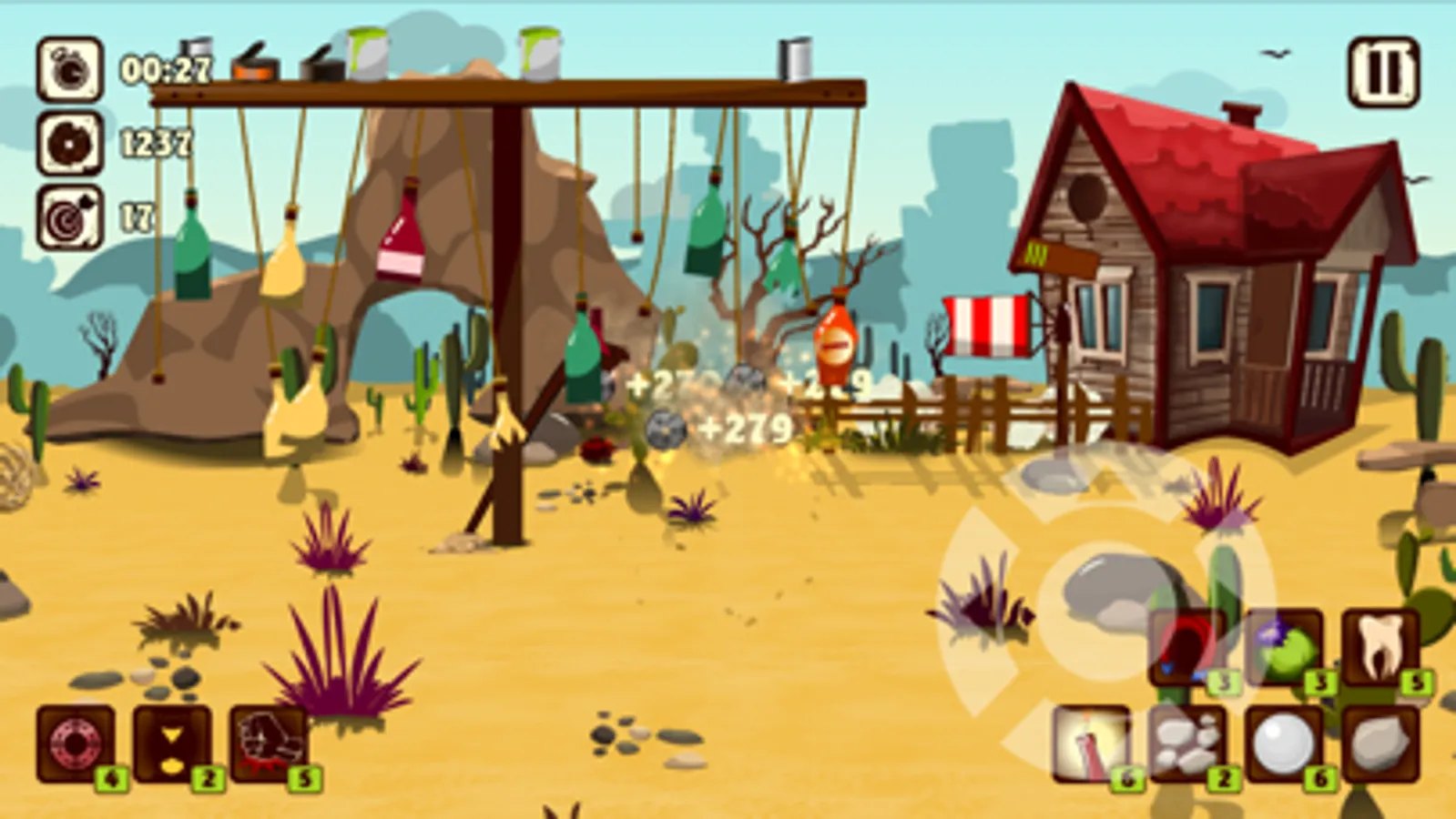 Different kind of slingshots and a lot of ammunition will help you in destroying all of targets in the game and special bonuses will give you the opportunity to achieve goals faster and easier. In addition, it is unclear how some hand appears sometimes to make attempt to spoil your life. But there is a board on it, because you can shoot the cactus! And what hand would want to deal with the cactus?