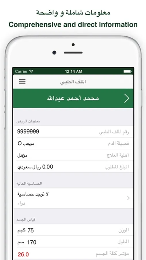 - الاطلاع على الملف الصحي الذي يوفر لمحة عامة عن أحدث المعلومات كما هو مسجل في السجل الصحي الخاص بكل مريض.