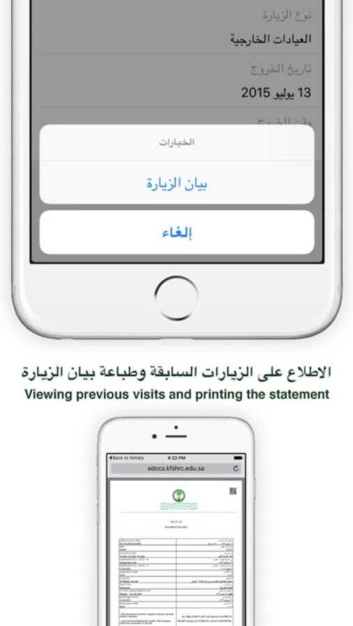 - الاطلاع على الزيارات السابقة وطباعة بيان الزيارة.