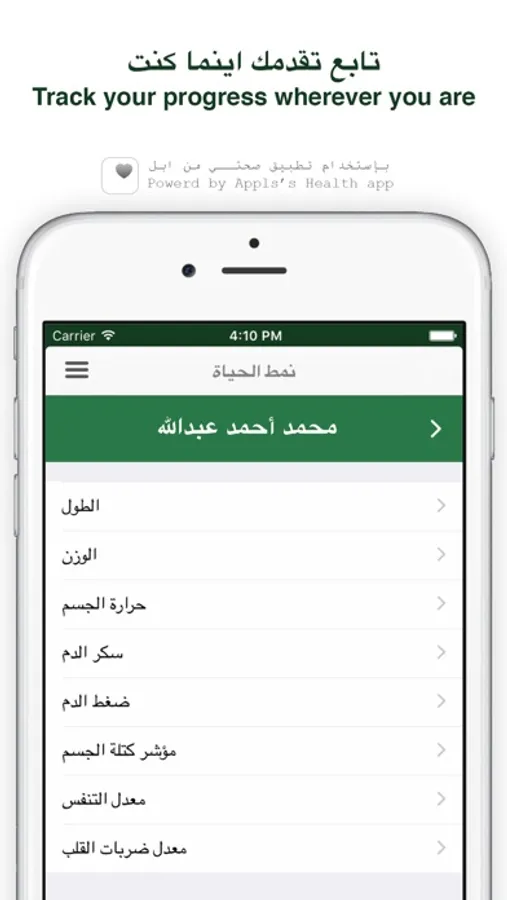 - نمط الحياة الذي يتيح جمع المعلومات المقدمة من الأجهزة الذكية المتصلة بالمستخدم مثل جهاز قياس السكر عن طريق قراءة المعلومات المخزنة في الهاتف الذكي الخاص بالمريض إذا تم اختيار تنشيط هذه الخاصية والسماح للطبيب تتبع التقدم المحرز.