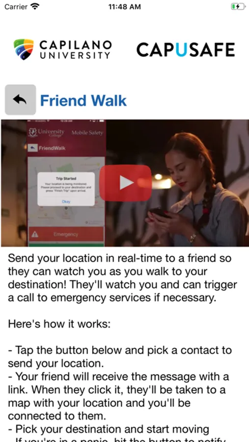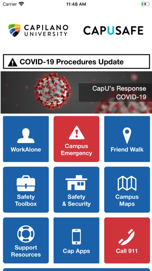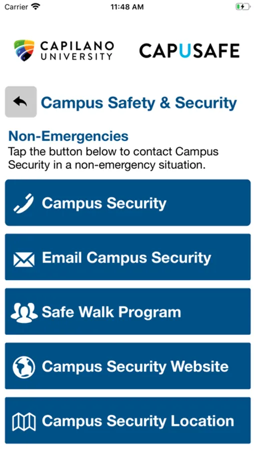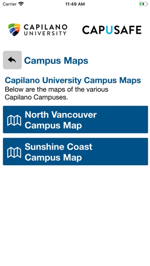 CapUSafe is a mobile safety app for students of Capilano University. The app provides quick access to campus security resources including the campus security emergency contacts, safety resources, emergency prep resources. Also, the app provides tips, information and tools to help students further enhance their security.