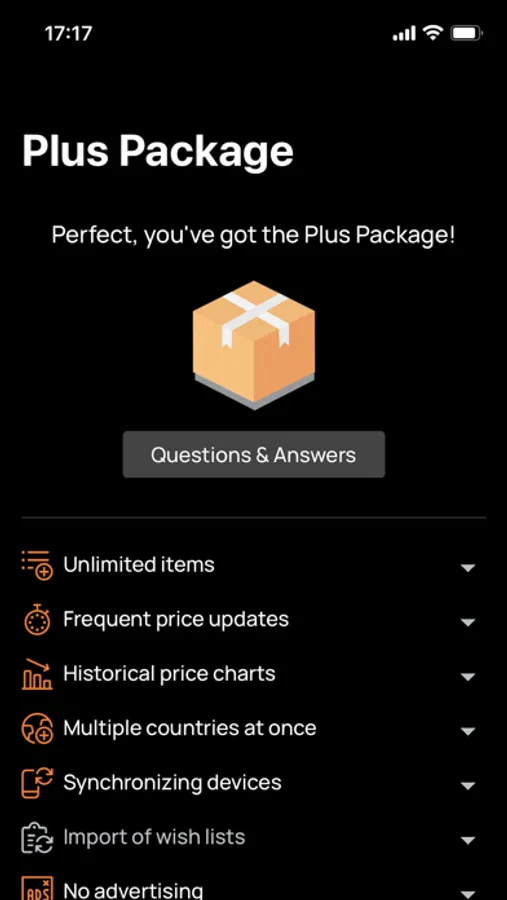 Import of wish lists, synchronization of multiple devices, support of several countries and currencies (USA, Germany, United Kingdom, Canada, France, Italy, Spain and more)