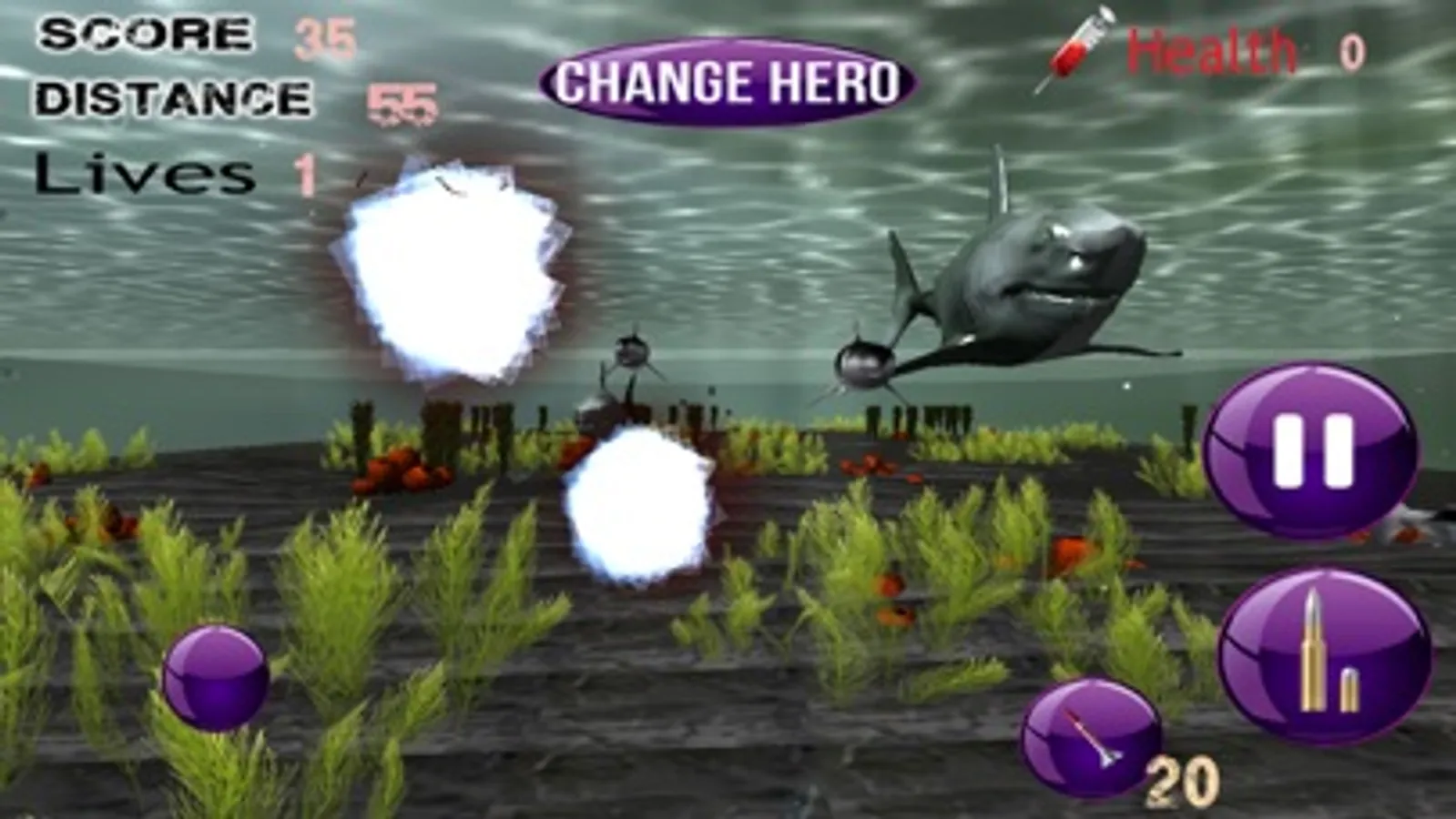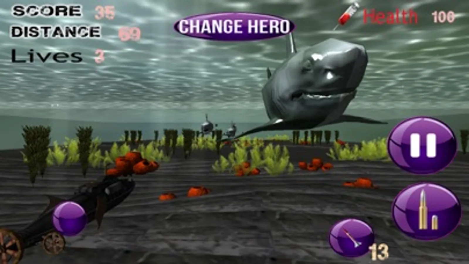 Just when you thought it was safe to enter the waters of Paradise Island, giant angry Sharks are coming from the deep sea. You are the chosen shark hunter to save the humanity from angry shark. World needs your shooting skills to control this water beasts, known as Megamouth Shark, with your huge submarine. Kill it before the hungry sharks kills all the humans and infect the mankind. Be cautions, Angry Sharks are most dangerous predators in the ocean that can detect prey from large distances, approaches very fast and kills in fraction of seconds. Can you save the mankind with your superior uboat and killing skills, openly challenging and confronting the blood hungry monster?