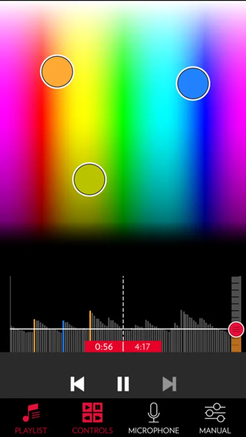 In this beat-responsive mode you can simply play music directly from you device or place it in front of your sound system's speakers. After selecting three of your favourite colours (millions of colours available) watch everyone’s wristband magically light up to the beat.