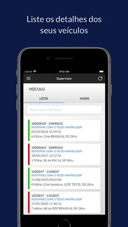 Nele você poderá visualizar e monitorar todos os veículos disponíveis em sua empresa através do seu smartphone ou tablet.
