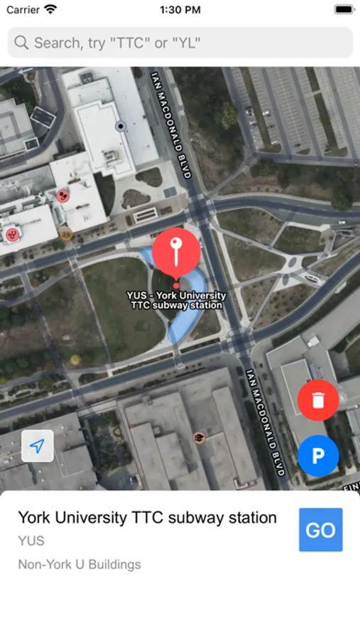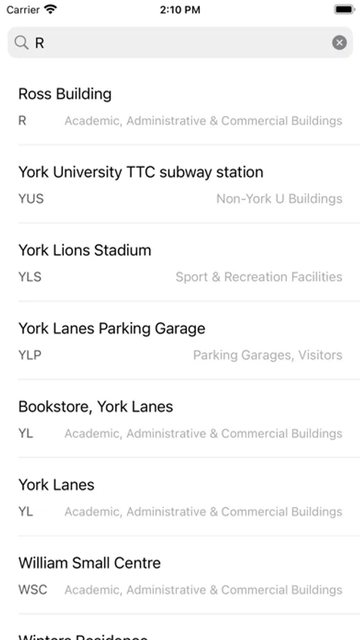You can search for buildings with their abbreviations, e.g. LAS for Lassonde Building, which are commonly used in other systems of the university.