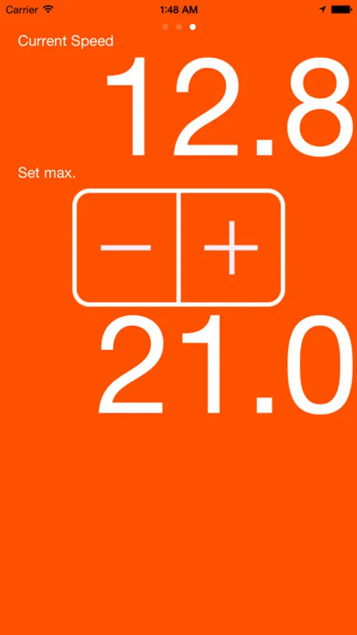 You simply set your minimum and/or maximum speed and start your workout. As soon as you fall below or get above your set speed limits the app will play a sound - and repeat it until you get back into your target speed range. No unnecessary functions, annoying popups or storage-wasting animations - it offers literally nothing but these 3 screens: