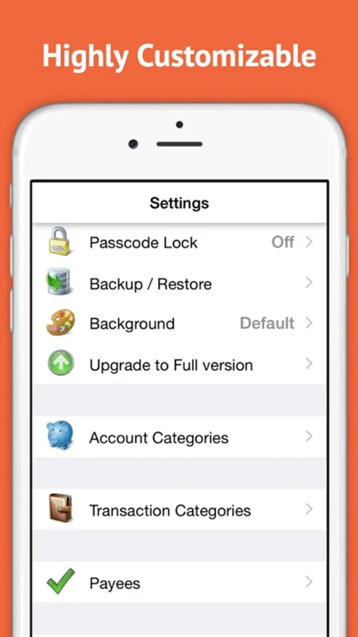 Create/Edit/Delete Account categories,Transaction categories and Payee list.