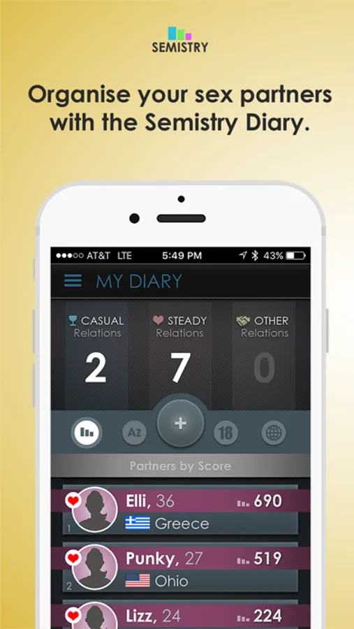 · The Semistry Diary allows you to visualize and organize your sexual relationships like never before. Track individual sexual partners and re-discover the high and low points of your sex life.