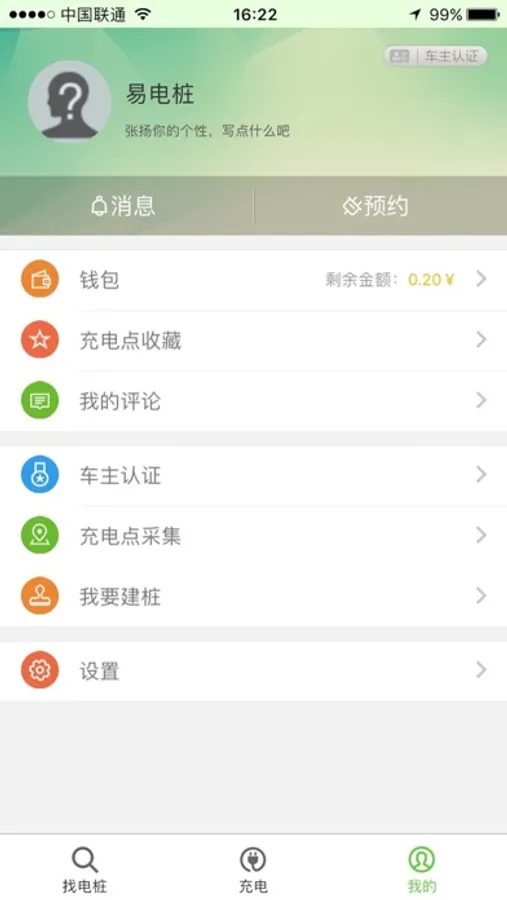 “易电桩”是一款为“电动汽车”提供服务的应用,已开启绿色出行新时代为理念,为电动汽车车主提供充电体验和充电运营服务的APP产品,用户可以便捷的查询到身边的电桩进行导航并充电。目前“充电桩”充电方式支持扫码充电、输入终端充电,还集成了启动充电、结束充电、充值、查看账户信息、消费信息以及电桩的预约和收藏等功能。