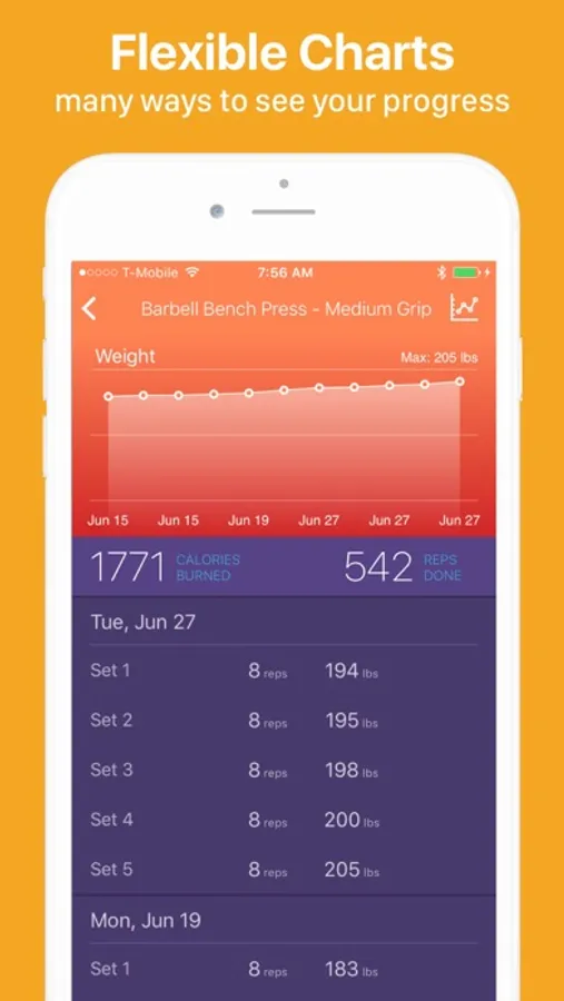 - Stay motivated with remarkable progress tracking including 1 rep max estimates, calories burned and all advanced stats.