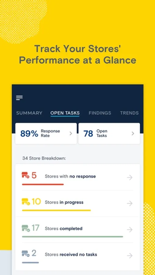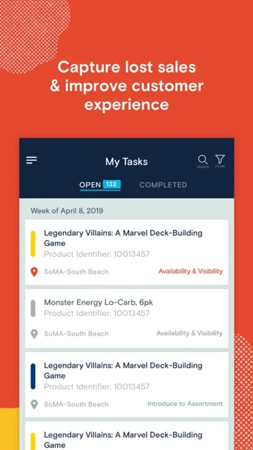 The app allows users to review all active recommendations specific to their store(s). The recommendations are broken into two areas: Open Tasks and Completed.