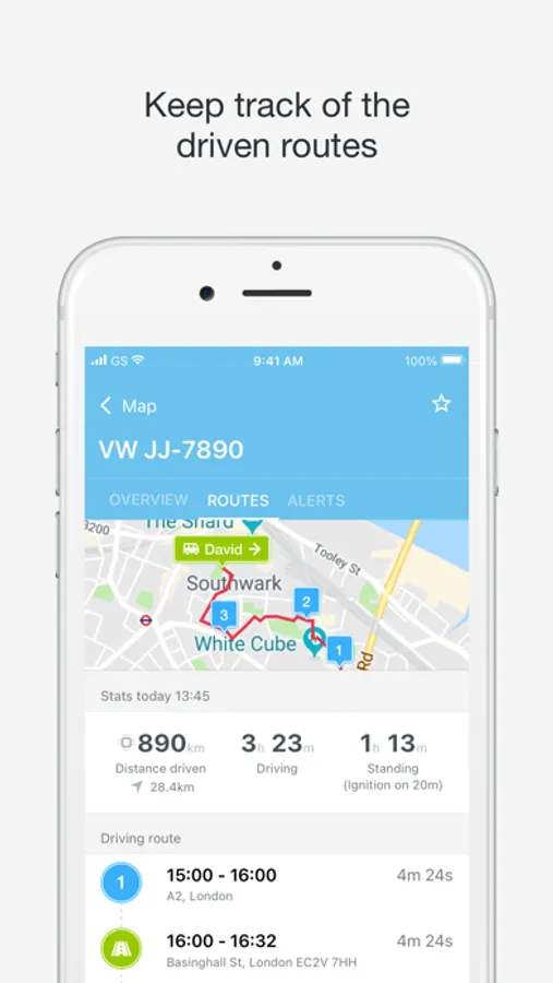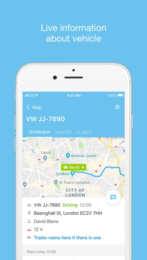 By using this mobile application you can access your vehicle data, follow their positions, routes, browse their route history, receive alerts about vehicles you have set up in web application.