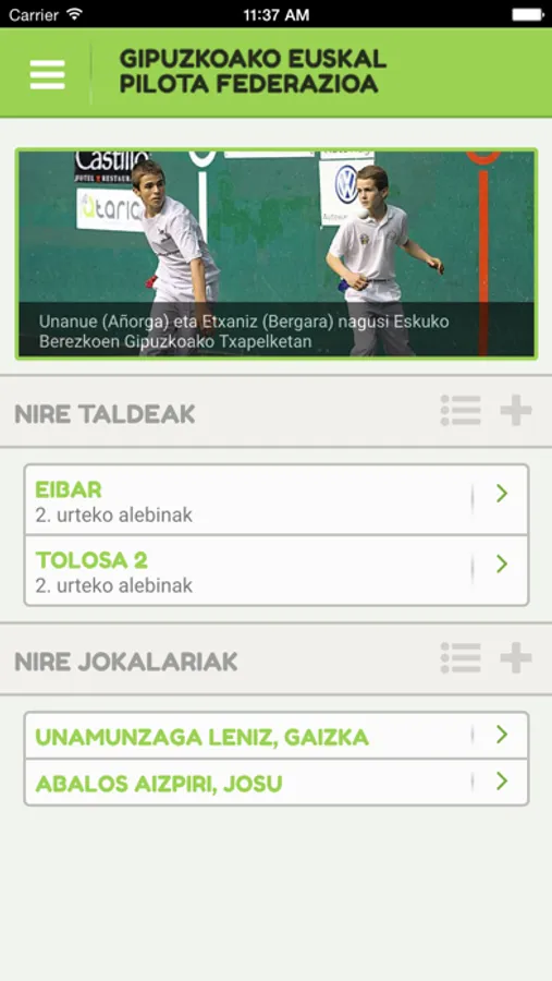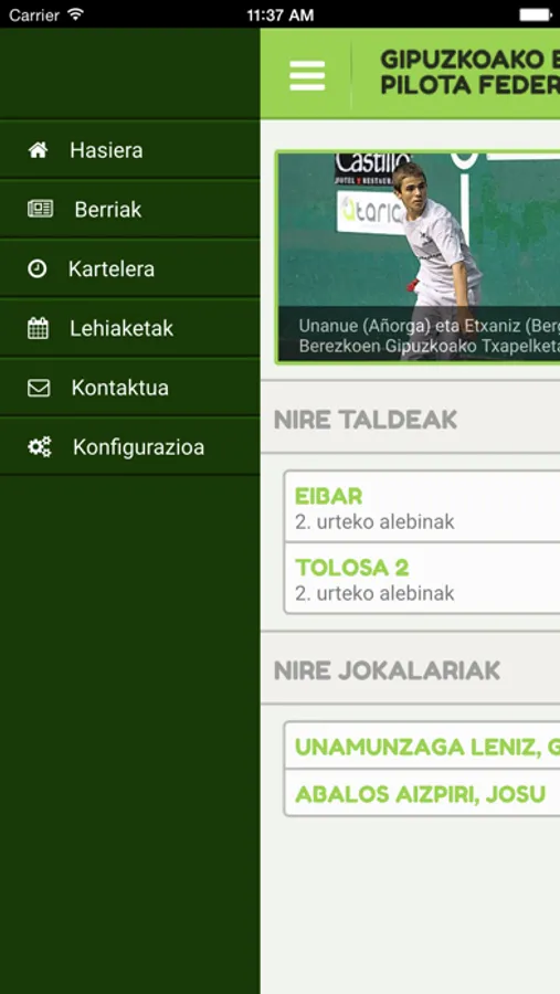 App oficial de la Federación Gipuzkoana de Pelota Vasca.