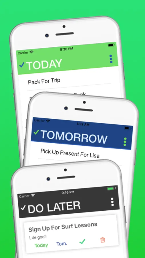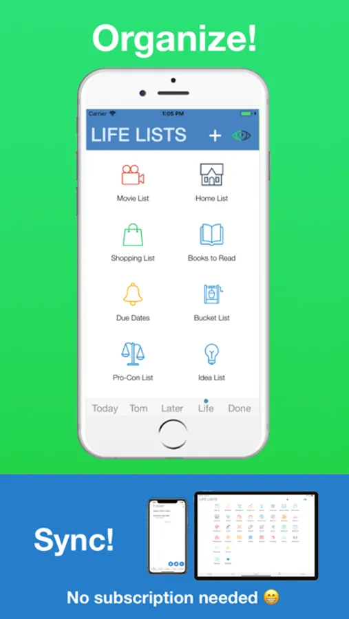 HOW IT WORKS: Plan your tasks into Today, Tomorrow, and Later lists. Use Life Lists to organize everything else!