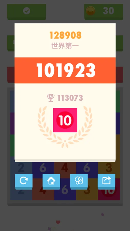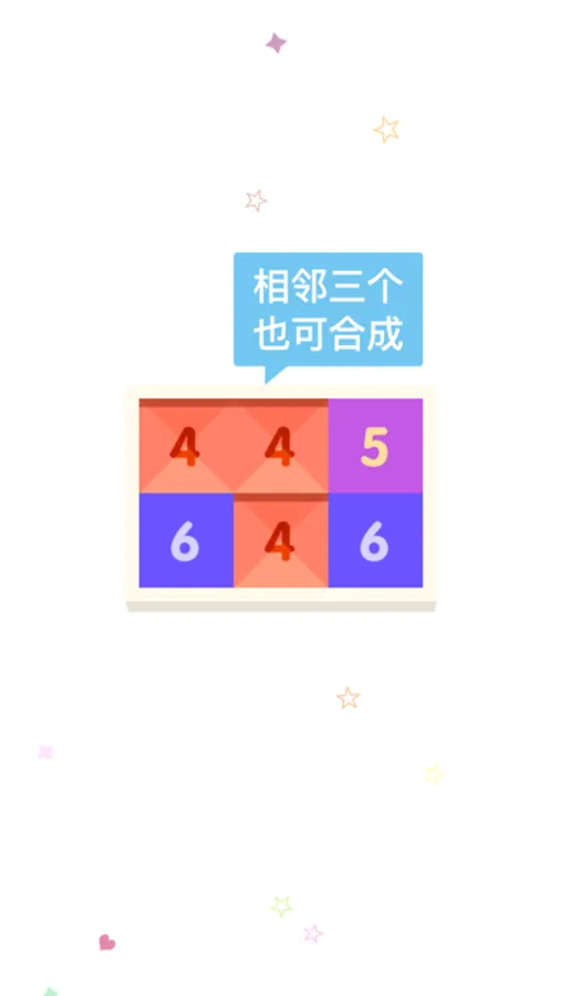 游戏规则:在这款让人入迷的益智游戏中,点击任何方块,次方块数字将加一,如果周围有2个或以上相同数字方块与之相邻,则这些方块合并到一起,生成的一个新方块数字将+1,同时得到方块数*数字*10的分数,合成的数字越大,挑战的难度越高。开始有5格能量限制哦!连续合成两个及以上的数字即可回复体力,无能量块时游戏结束,努力合成20吧!合到50您就修仙成功了^_^。