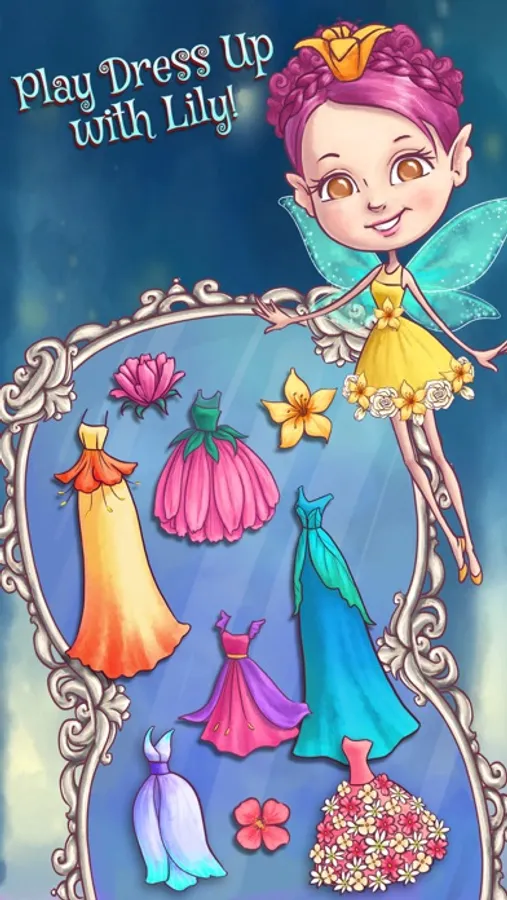 DRESS UP. Choose from tons of fashionable outfits and accessories, and dress up sweet Lily with the magical flower dress!