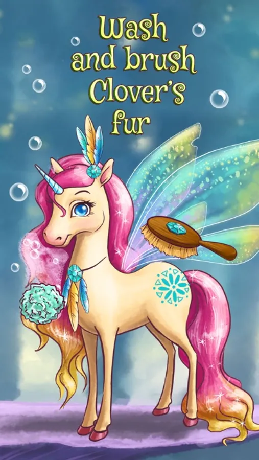 HORSE CARE. Take good care of pixies' best friend unicorn Clover. Wash it with a bubbly sponge, use the magic wand to change unicorn’s hair color and comb to make Clover’s hair sparkling. Play unicorn dress up and decorate it with gorgeous accessories: diamonds, flowers and ornaments!