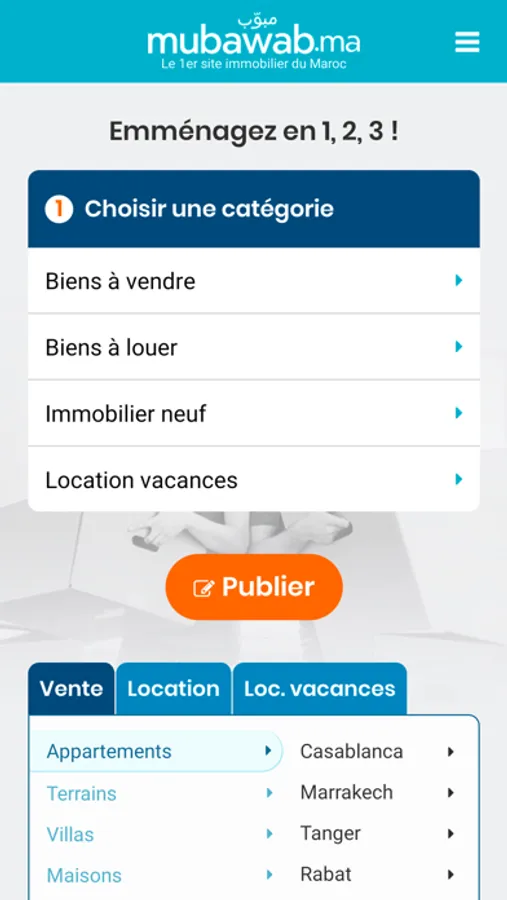 - Trouvez un appartement à louer à Casablanca ou une maison à vendre à Agadir facilement avec des filtres de recherche (par prix, date, surface, région, catégorie…)