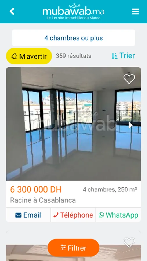 Grâce à l’application Mubawab, votre recherche d'annonces immobilières est facilitée :