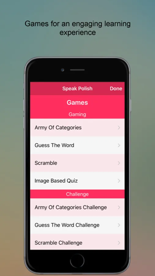 Speak Polish app with more than 2000 words in 55 categories like Food, Clothes, Numbers, Travel, Emergency, Health etc. is here to support you in Polish Language Learning. Our visual senses help us recall things easily, so this Learn Polish app is full of word images and audios for SMART learning. To be more interactive, this Learn Polish app contains different types of games.
