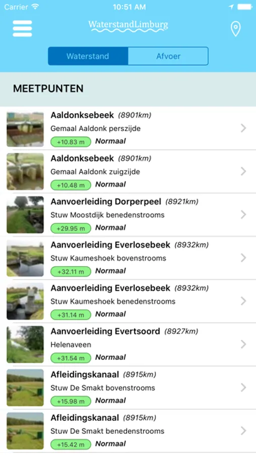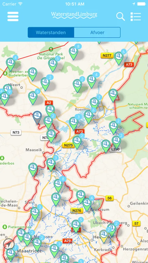 WaterstandLimburg. De naam zegt het al: via deze app van waterschap Limburg is 24/7 de waterstand te raadplegen van vele meetpunten in Limburgse beken. Ook de waterstand van de Maas in Limburg is inzichtelijk: deze waterdata is afkomstig van Rijkswaterstaat.