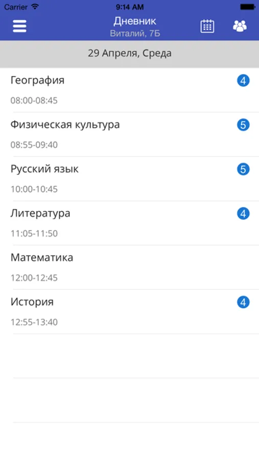 Дневник учащегося для школьников и их родителей. Работает на основе данных АИС "Электронная Школа". "Электронная Школа. Дневник" позволяет родителям и обучающимся на своих телефонах и планшетах получить информацию о расписании уроков, текущей успеваемости, пропусках, среднем балле, домашних заданиях и итоговых отметках.