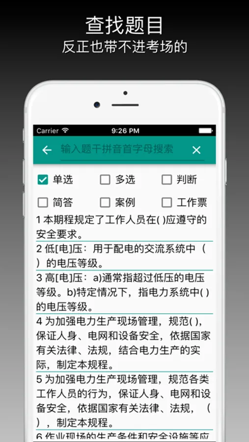 软件的网络题库中有全新的2023版安规。含有,线路、变电、配电、建设线路、建设变电、电力监控、通信、信息、营销、全专业通用、调相机、直升机、无人机、风电、光伏电站、电工制造、水电厂动力、水电基建等专业,还有法律、企业文化、安全、五通、三种人以及各种竞赛。