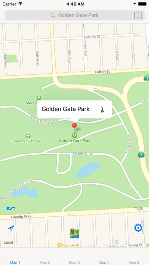 Browse multiple maps with tabs. Switch between Apple and Google Maps.